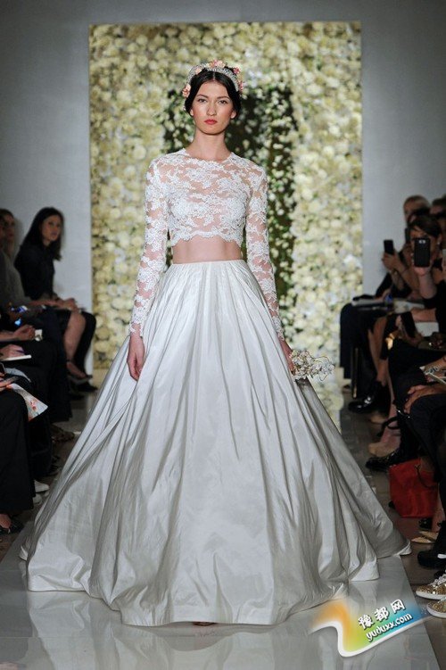 两件式婚纱是2015婚纱的最热款式,打破传统腰线剪裁的性感的细节设计让新娘更富时尚活力。