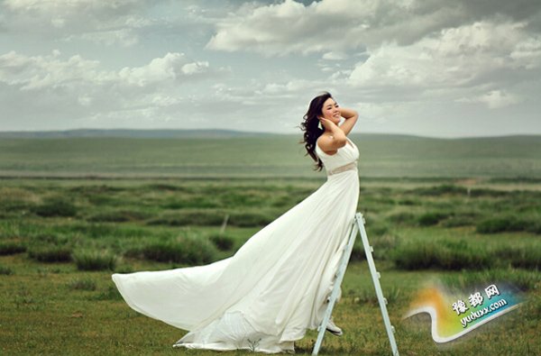 八:如何挑选服装? 婚纱是最重要的,所以新娘要仔细挑选婚纱的式样。而且室内外两套白纱应该有所区别。例如,室外选了大拖尾,室内就可以选小拖尾;室外选抹胸,室内就可以选吊带,要体现出不一样的风格为好。 一般来说,白纱都不会非常简约,毕竟是郑重其事的婚纱照。但是突出腰身和胸部的曲线是必须的。如果自己不是很有把握,也可以让礼服助理帮忙参考。还有就是必须试穿才能看到效果,婚纱挂在那里时完全没有感觉的。 过多的闪光装饰现在已经不流行了,蕾丝,素色的绣花和隐藏在数层薄纱下的小亮点会给人以精致的印象。尤其不要选择那种全身上下布满塑料亮片和小珠子的婚纱,简直有点土气了。