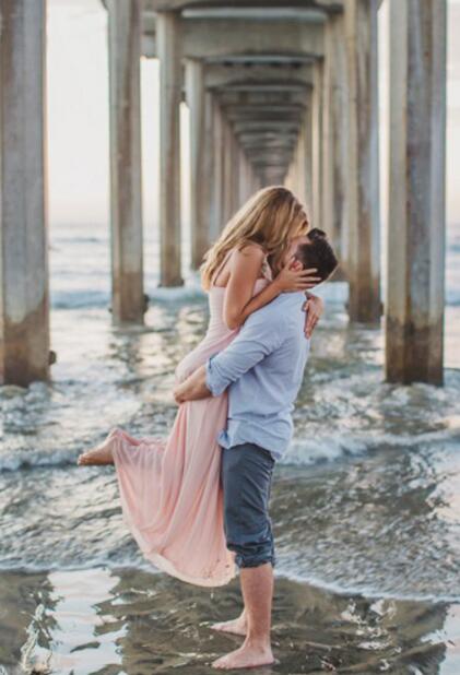 广场处的音乐喷泉为背景,淋漓雨滴喷涌而下,浪漫而又大气,新人做出一些浪漫拥吻的姿势,切记不要太过规矩地站立,会显得太拘束不自然。