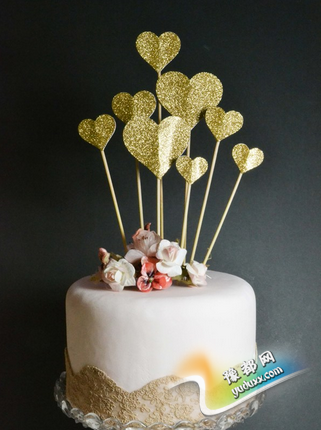 婚礼蛋糕用心形棒的装饰,更有视觉的冲击感。