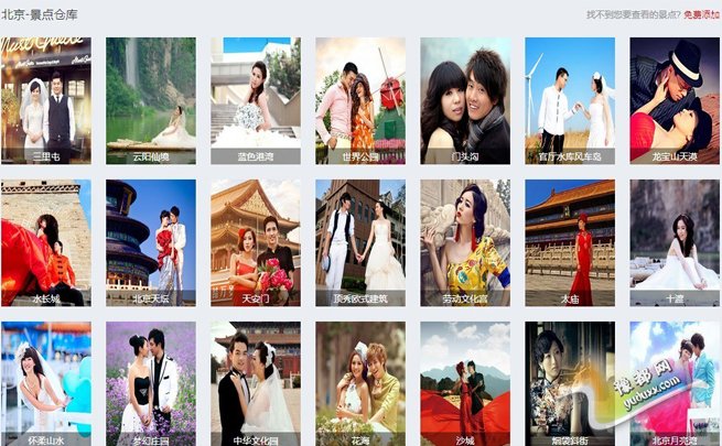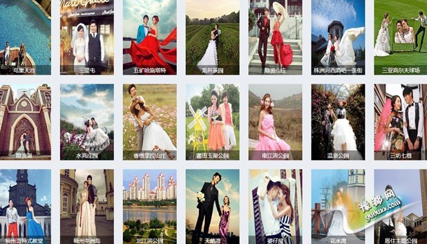 外景婚纱照最重要的还是景点的选择,一个比较理想的景点便是完美婚纱照成功的一半。新人们都希望选择一个环境优美,有特色又美丽的地方,但很多新人对景点不是很清楚,往往是在拍摄时候才知道。而我们就考虑到了这一点,为新人准备了很多漂亮的景点,分组别类的展现在新人的面前(图一),提前了解拍摄景点,给自己的婚纱照有个清晰的认识。也给新人一个选择属于自己风格和追求个性创意的空间。