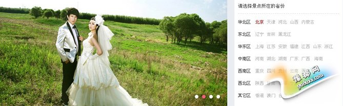 新人拍摄外景婚纱照时也要注意的问题就是景区距离。因为距离的远近直接关系到婚纱照价格的高低、安排拍摄时间的长短、拍摄事务的预先准备。在司空见惯的本地市区拍摄婚纱照和在其他风景优美的别地景区拍摄婚纱照,新人当然会有不同的心情。在新板块中,我们也根据同一地区的不同景点进行了归类,也能很方便的选择周边临近合适的景点(图四)。那么,最终是在市区、郊区、郊县、周边、异地景区,还是内外兼顾,可以结合自身的条件和实际情况去选择婚纱照景区。