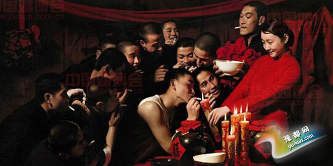 这是婚礼中的高潮环节。闹洞房除逗乐之外,还有其他意义,相传洞房中常有狐狸,鬼魅作祟,闹洞房能驱逐邪灵,增强人的阳气,而闹洞房是为了增加新房的喜气。